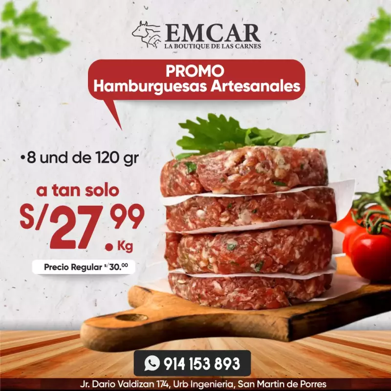 -Pack de 08 und de Hamburguesas Artesanales 120 gr c/u